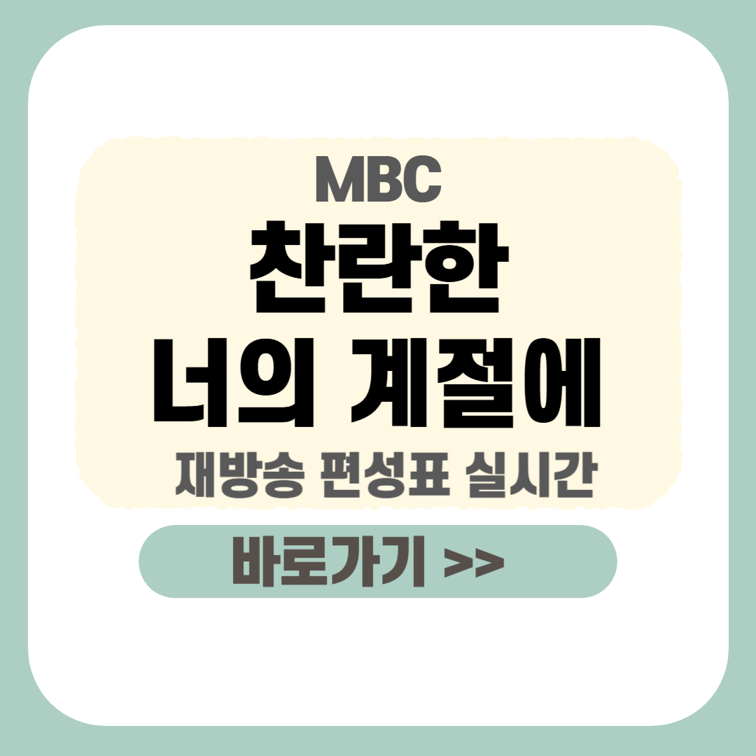 드라마 재방송 시간 및 편성표 시간을 확인해 보시고 추가로 MBC 드라마 실시간 시청 방법, 다시보기 방법, 출연진, 등장인물 등 간략히 요약하여 정리하였으니 끝까지 확인해 보시기 바랍니다.